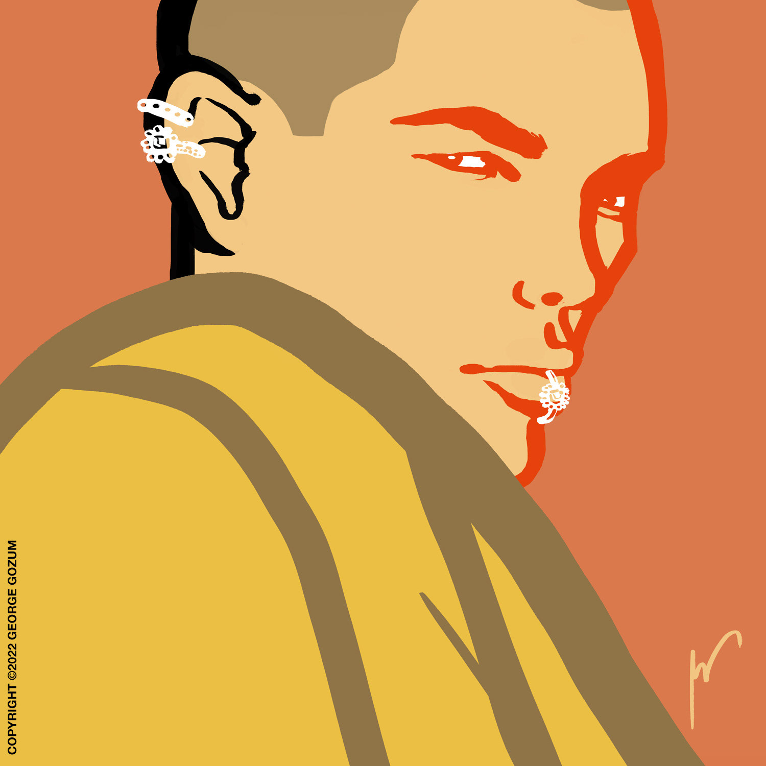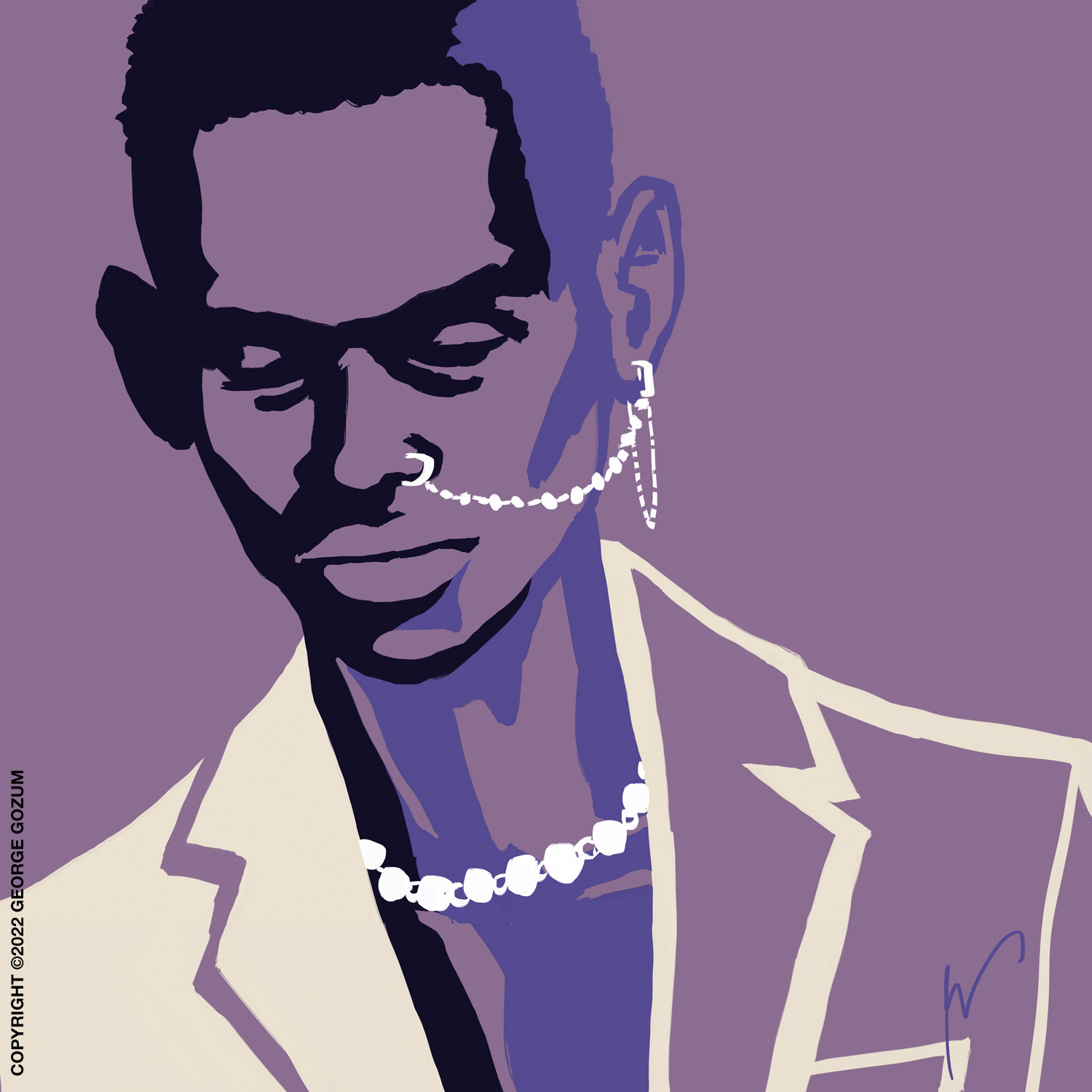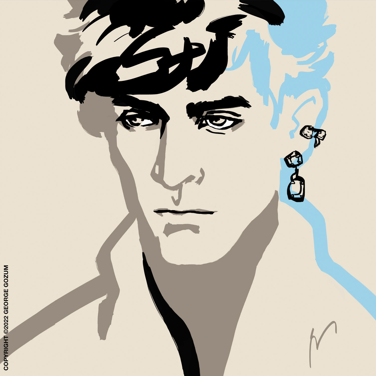 Poster-style illustrations of stylized men's portraits featuring men's jewelry