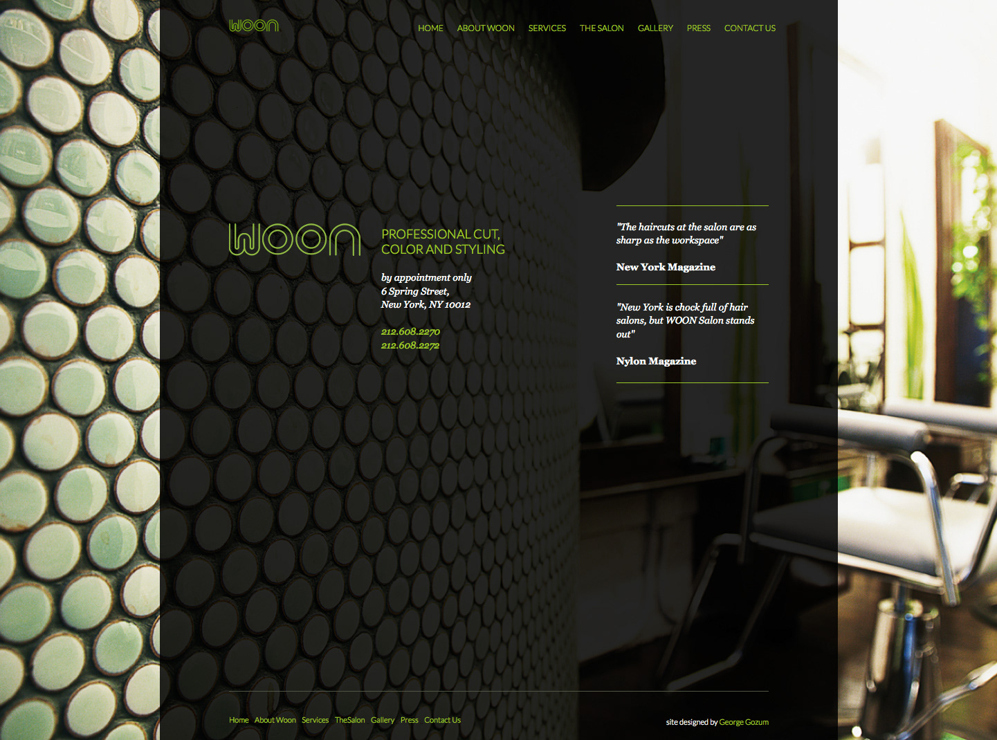 The site showed the dual aspects of an accessible and friendly neighborhood salon (albeit in the very trendy Nolita district) that was also the home base of acclaimed industry stylist Kevin Woon, whose extensive work with celebrities, fashion shows and magazine editorials has made him a fashion industry trade secret.
